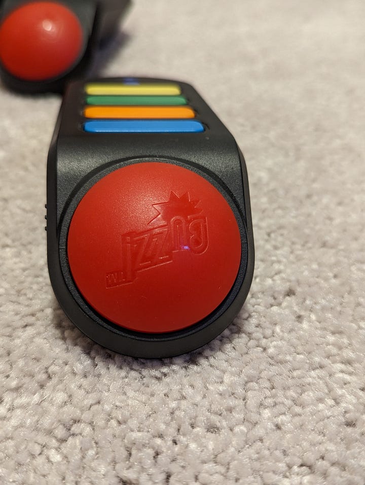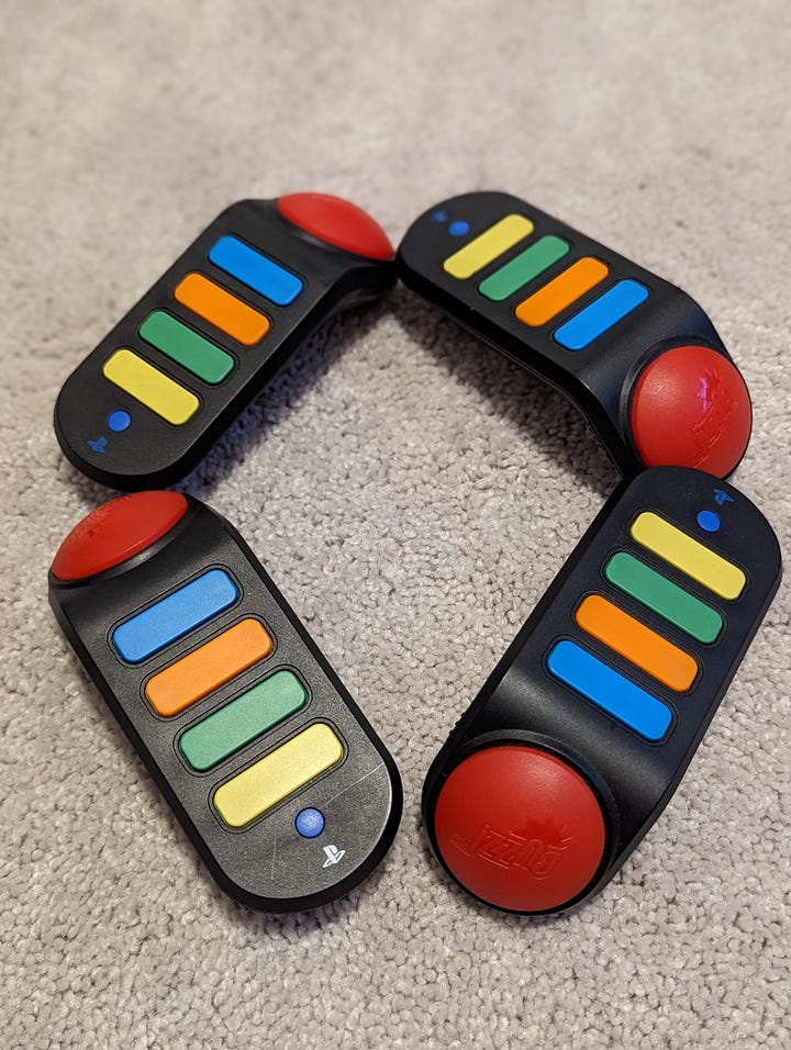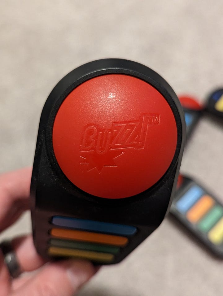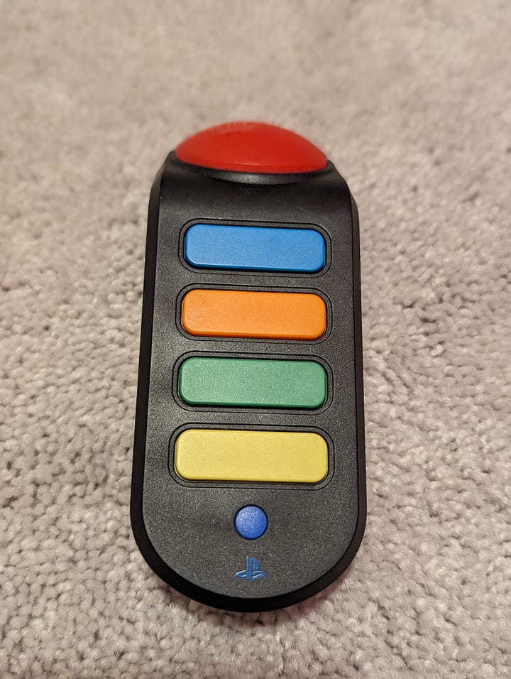 The buzzers that came with Buzz! were great. It had a big red buzzer at the top to buzz in when you knew an answer and four colors that you’d use to pick your answer. This also came with FOUR buzzers in the box along with the game for no extra cost. That’s how you do it!