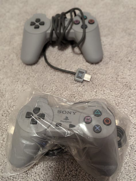 2 PS1 mini controllers: In addition to my newfound controller addiction, I also have to admit that I love these little mini replica consoles that have been coming out recently. I have them all except the TurboGrafx-16/PC-Engine (impossible to find for a decent price). It was a bit of a letdown at what a turd the PS1 Mini was. Thankfully the mod community swooped in and fixed it after a few months and made it a great emulation device.