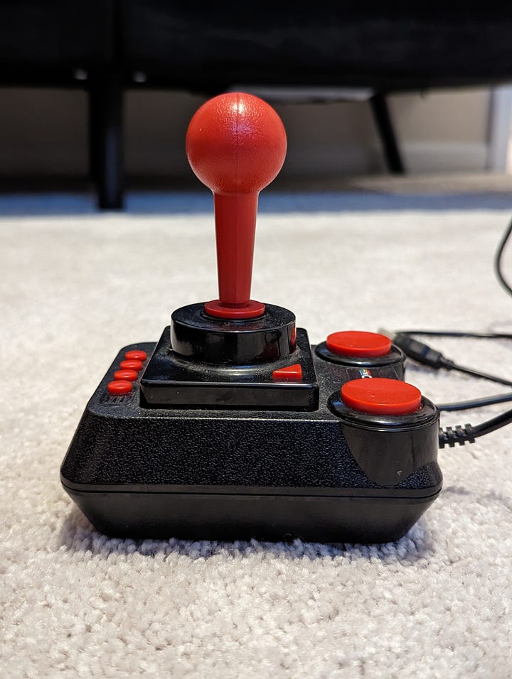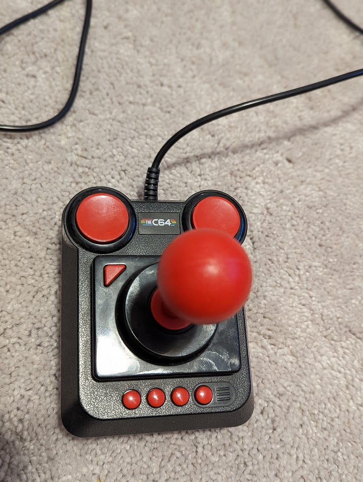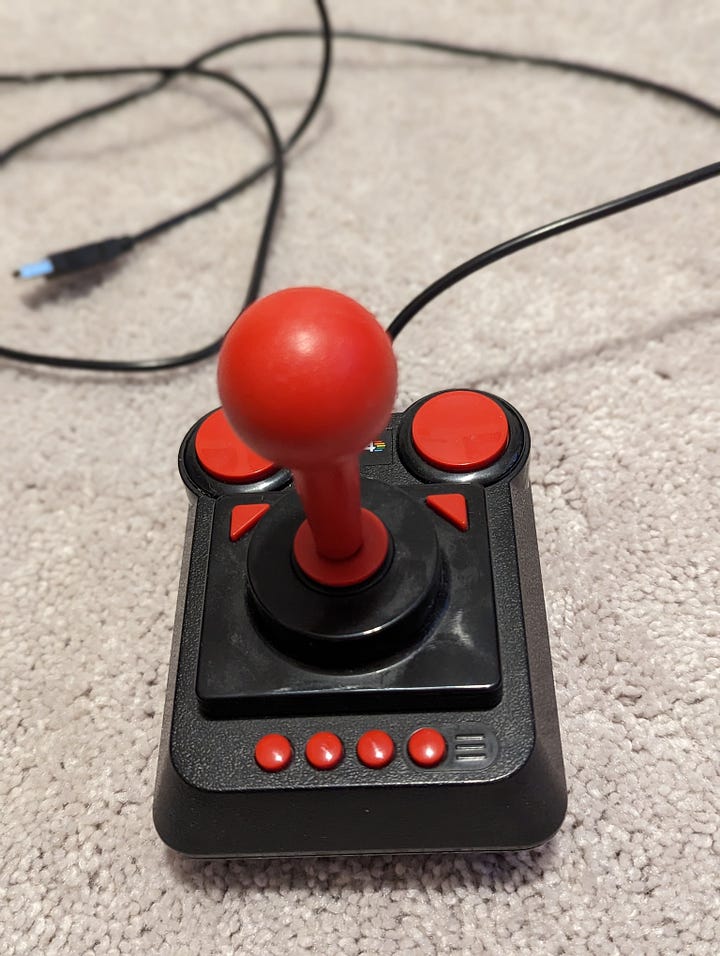 I remember having 2 joysticks for this computer as a kid. I will also never not sound like my mom calling every controller a “joystick” no matter what it is. I had the handheld EPYX and a long 1-button joystick thing called The Boss (I think). This one is sort of a miniature/combined version of both of those. It works fine especially if you LOVE loud clicking.