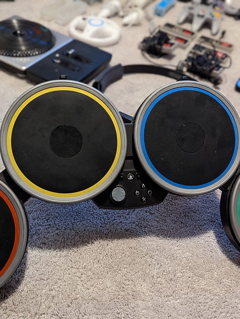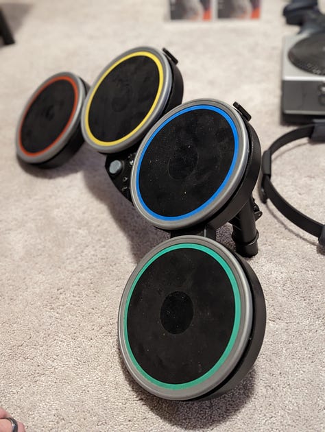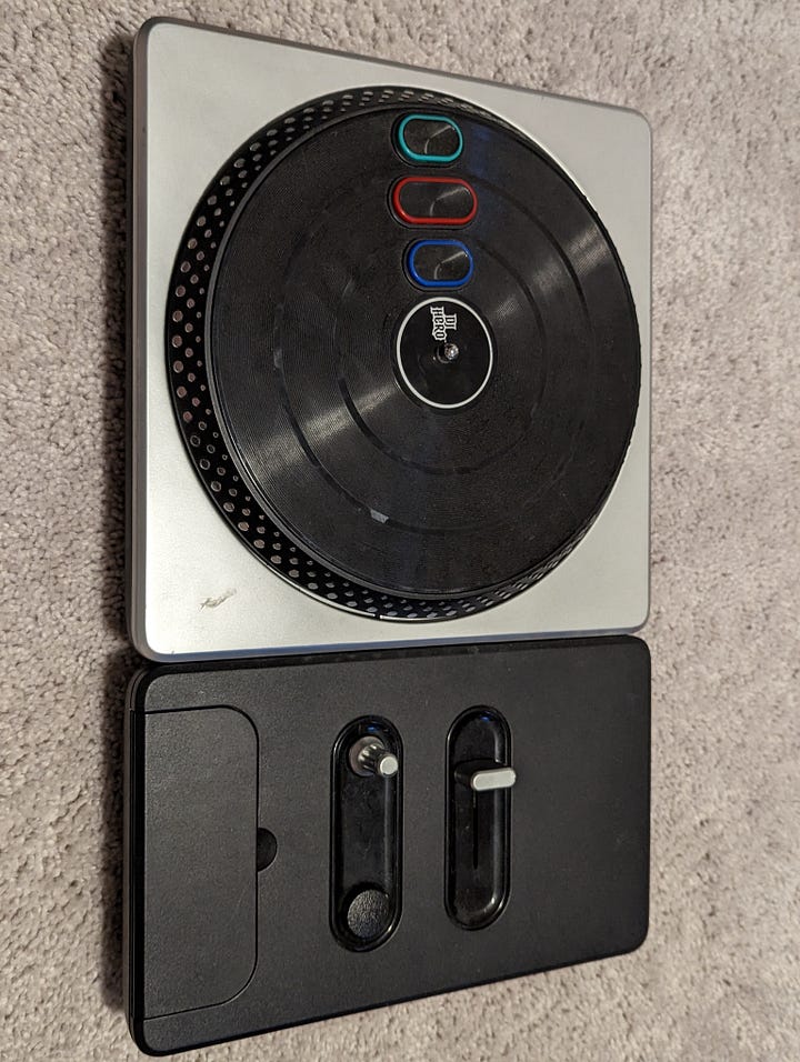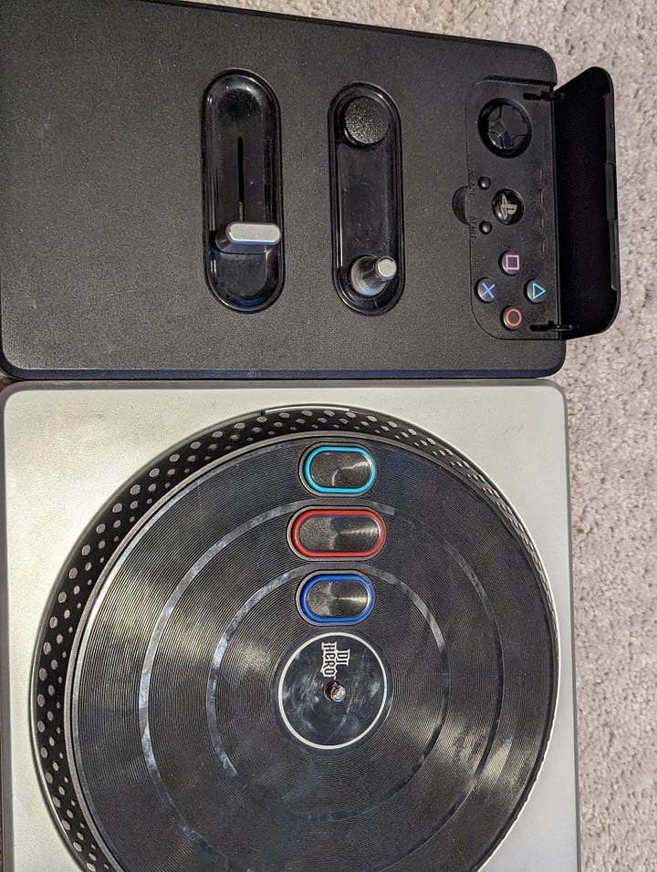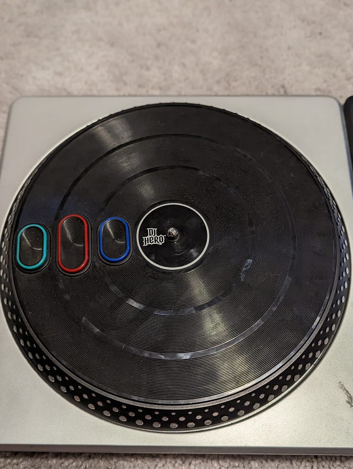 1 DJ Hero turntable: I was obsessed with all the music stuff at the time. You name it, I had it. I even had Power Gig for a hot minute but we returned it because my wife thought it was a new Rock Band game (it wasn’t). Being a big hip-hop fan, this game seemed right up my alley, and it did NOT disappoint. I still currently have both games and one day, I swear I’ll put some batteries in this turntable and play it again.
